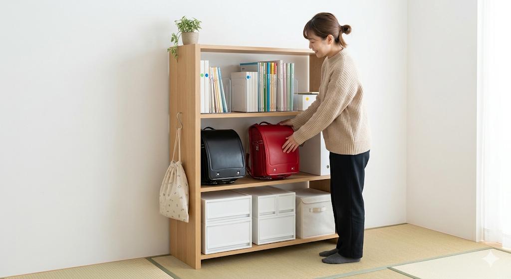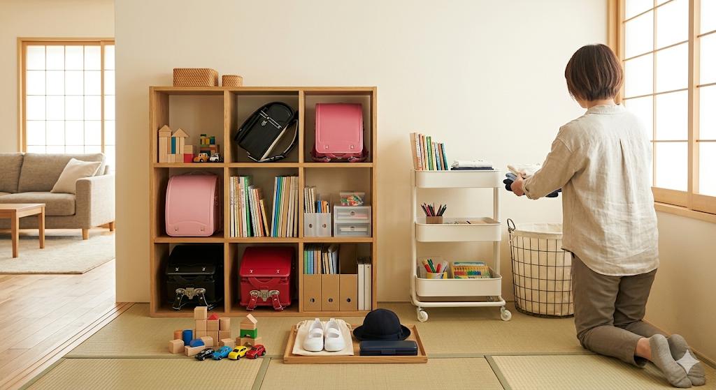 【神収納】小学生4人の学用品、無印良品のスタッキングシェルフで完全勝利したったwww