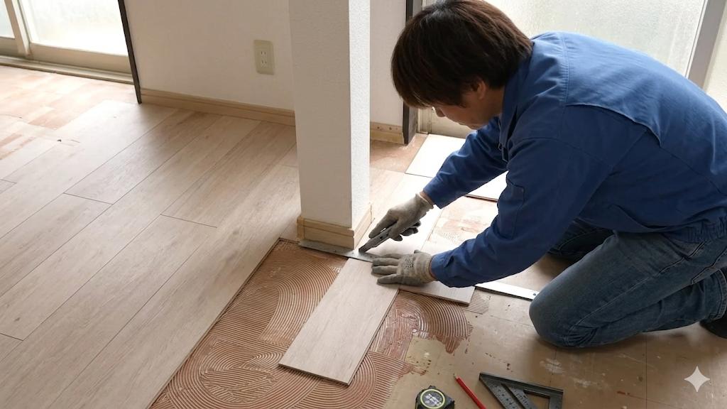 【DIY必見】プロが教えるフロアタイルの貼り方が凄すぎて職人技の極みだった件www